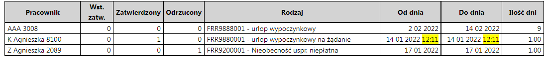 W raporcie wniosków urlopowych eksportowanym do Excel przestała pojawiać się godzina w kolumnach "Od dnia" "Do dnia".
