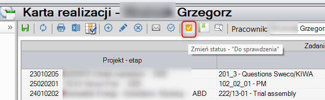 a. Sprawdzenie na liście zadań w danym projekcie, które zadania mają status ‘Do sprawdzenia’.