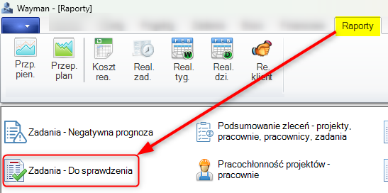 b. Użycie raportu ‘Zadania - do sprawdzenia’ dostępnego w zakładce ‘Raporty’: