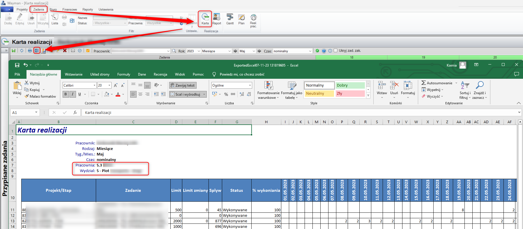 Dodano informację o pracowni i wydziale w wyeksportowanym pliku karty realizacji: