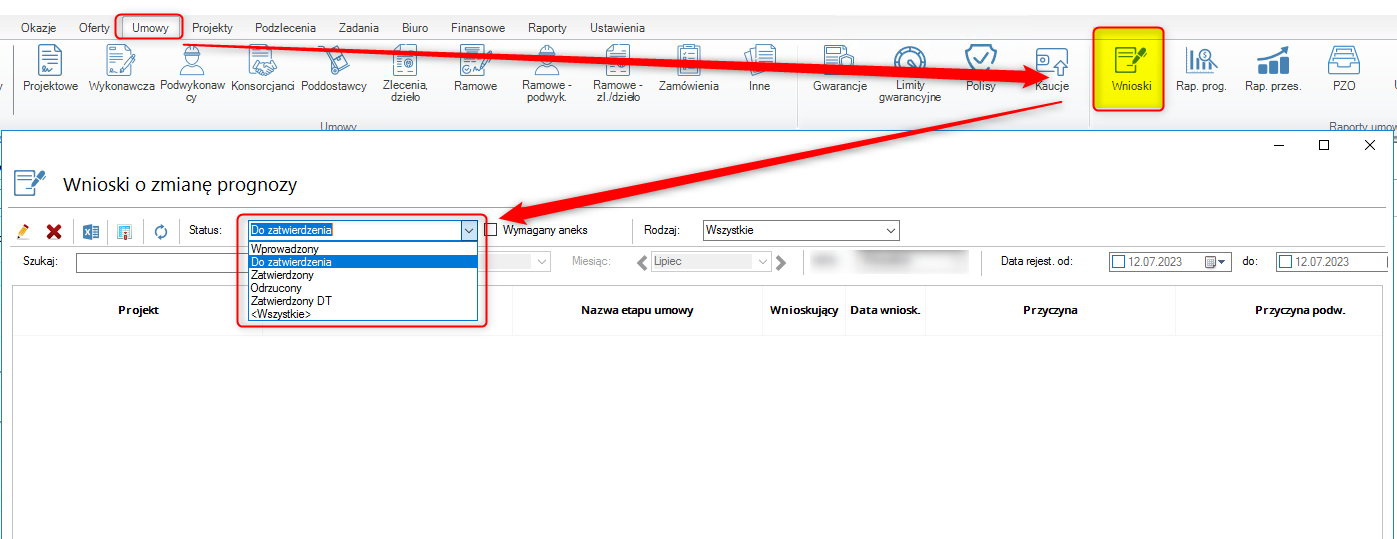 2. Nowe filtry we Wniosku o zmianę prognozy
