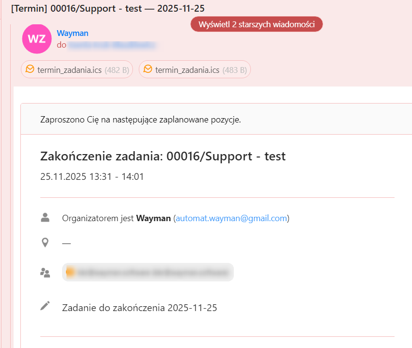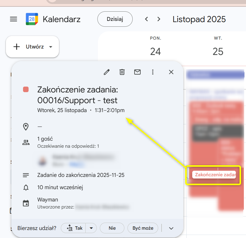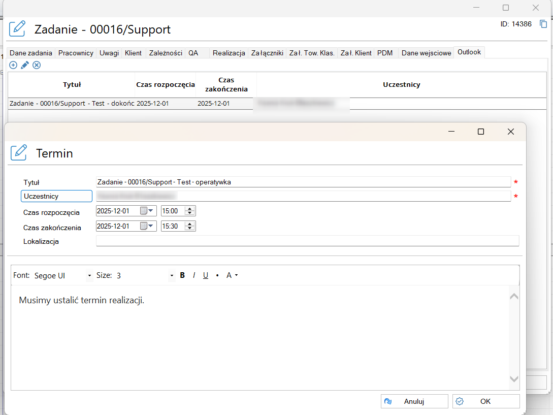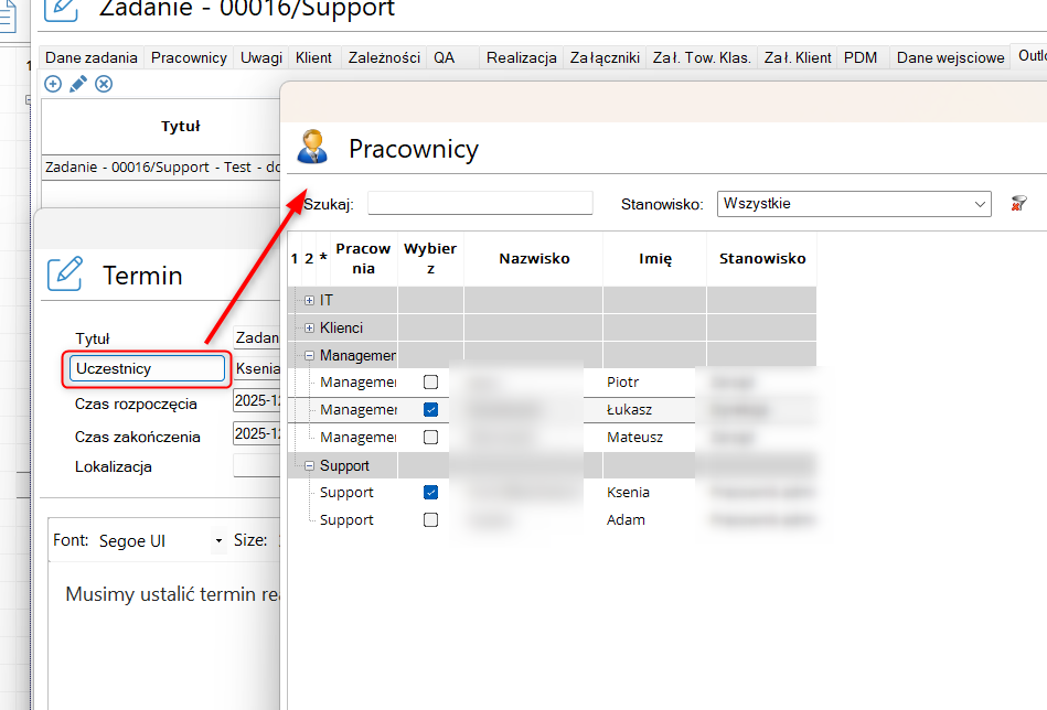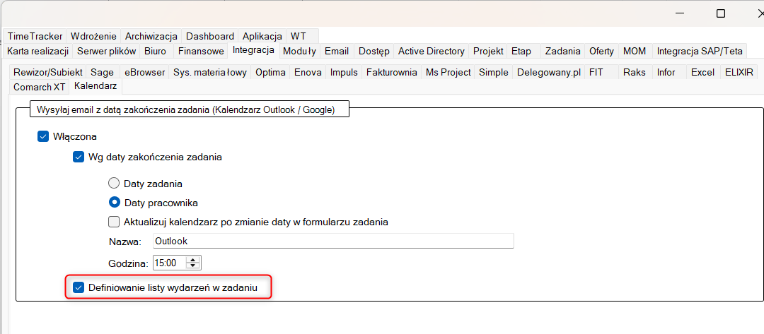 Gdy włączymy w ustawieniach checkbox "Definiowanie listy wydarzeń w zadaniu":