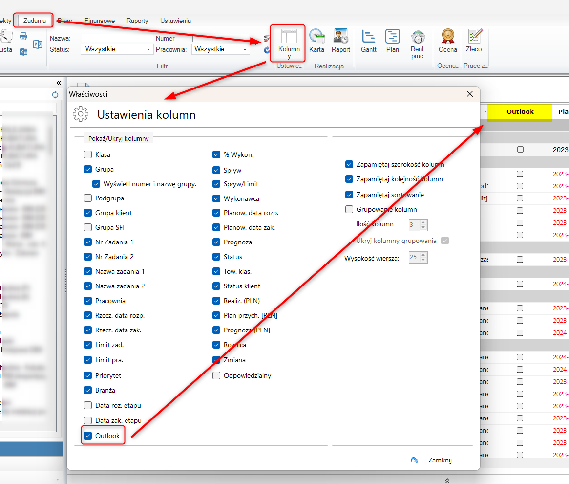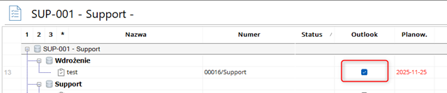 Wówczas pojawi się nowa kolumna, którą należy włączyć w ustawieniach kolumn na liście zadań: