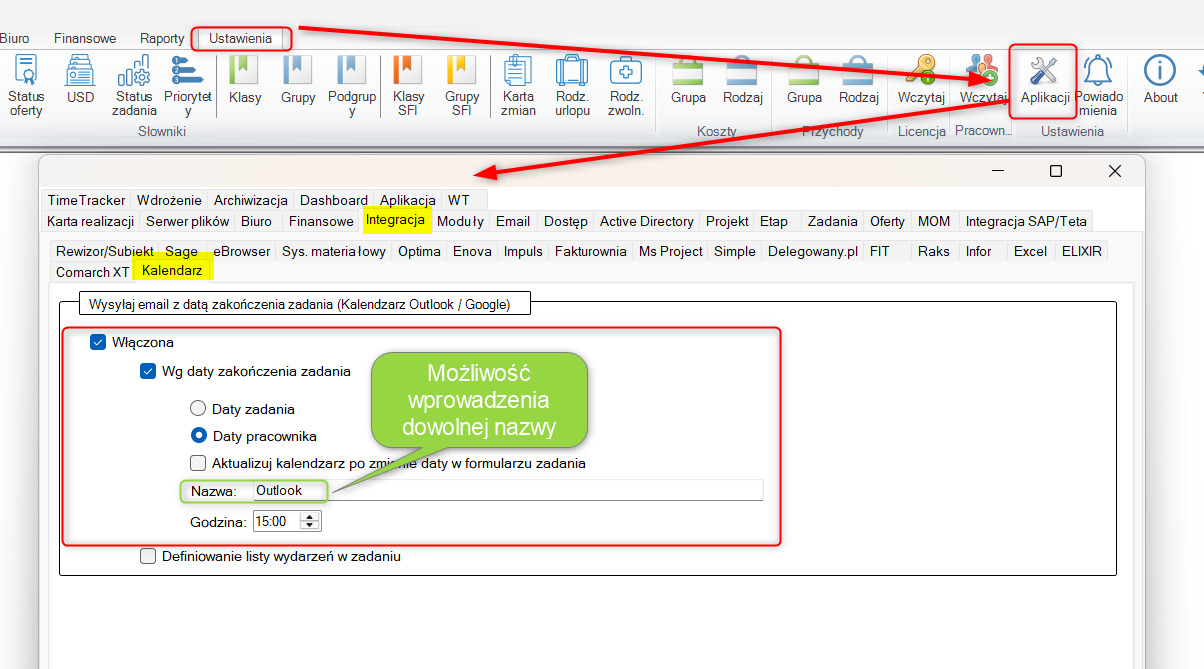 Celem rozwiązania jest usprawnienie planowania pracy poprzez przenoszenie zadań z systemu do kalendarza Outlook lub Google z datą ich zakończenia.